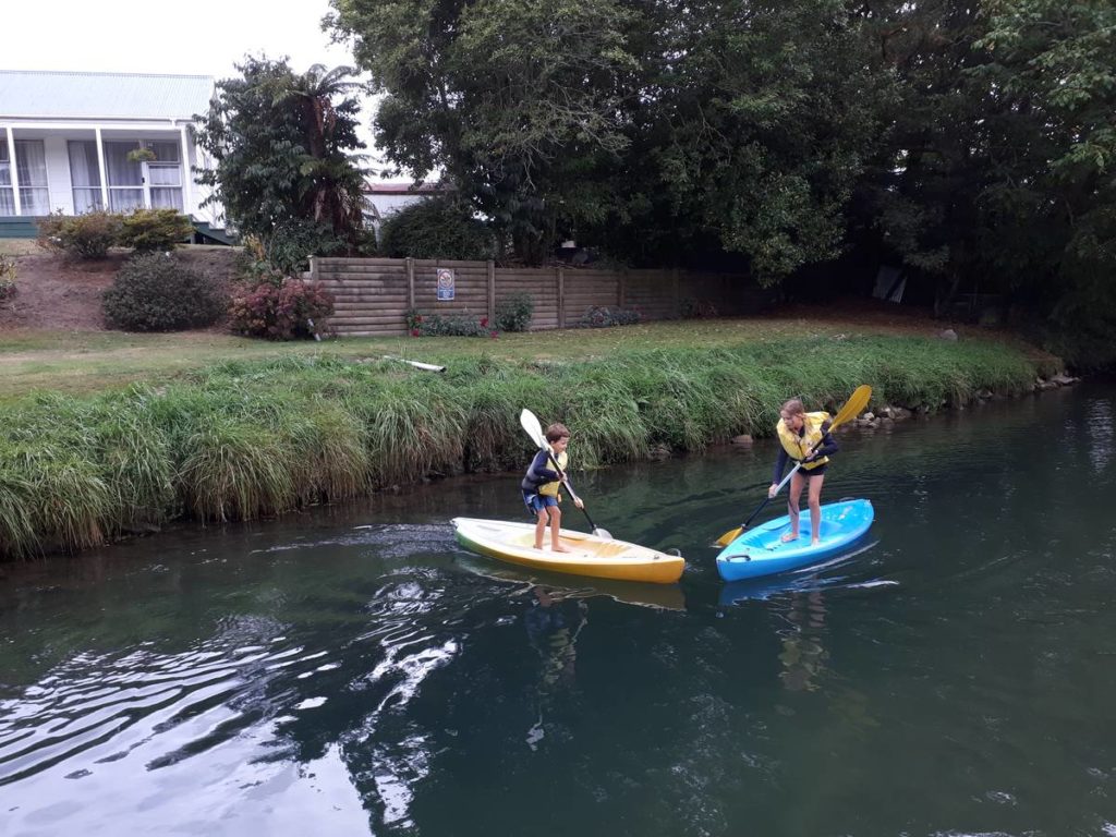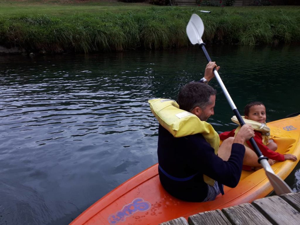 Mercredi 27 mars, nous avons rejoint Rotorua. Cette ville se trouve dans une région très volcanique de Nouvelle-Zélande et est connue pour son intense activité géothermique et le tourisme qui en découle. C’est d’ailleurs un des coins les plus visités de l’île du Nord. Nous avons trouvé un camping relativement calme, bordé par un ruisseau à quelques minutes de la ville. Des kayaks à disposition nous ont permis de nous amuser et de rejoindre le lac de Rotorua. Clarence et Léon se sont fait une grosse frayeur en approchant involontairement de très près un gros chien de garde qui n’avait pas l’air commode ! Clarence en est même tombée à l’eau !