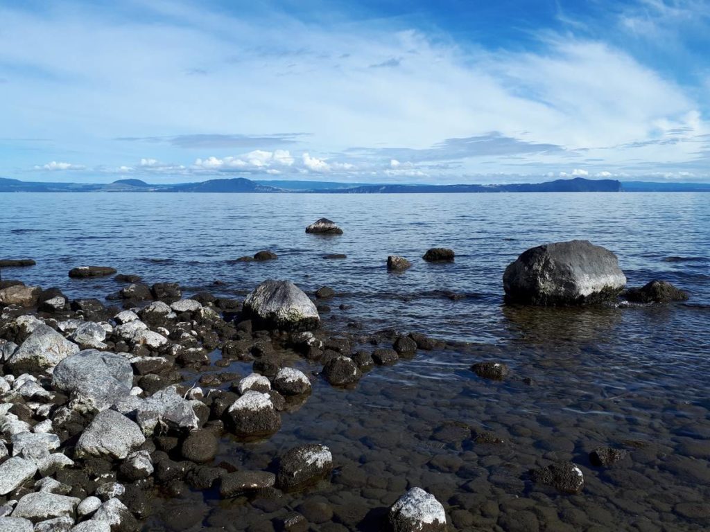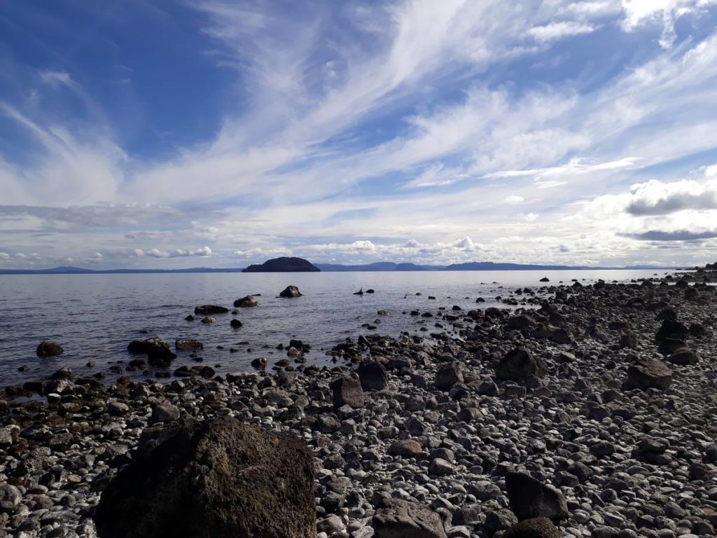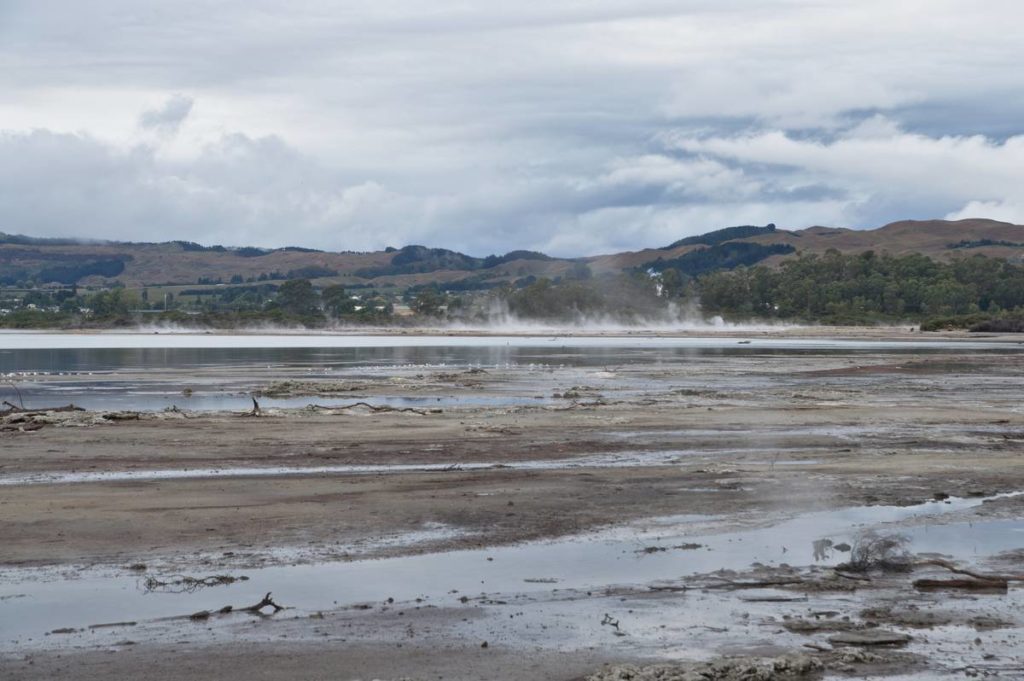 Le soir nous avons dormi à Taupo, ville se situant au centre de l’île, au bord du lac du même nom. Ce lac est immense et est formé par un immense cratère de volcan. Ce supervolcan a connu une gigantesque éruption il y a 25000 ans. Il est toujours actif et la dernière éruption date de la fin du 19ème siècle.