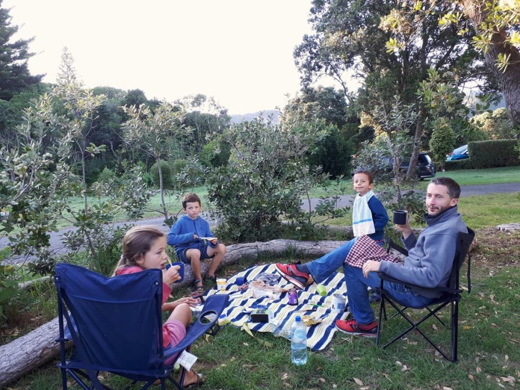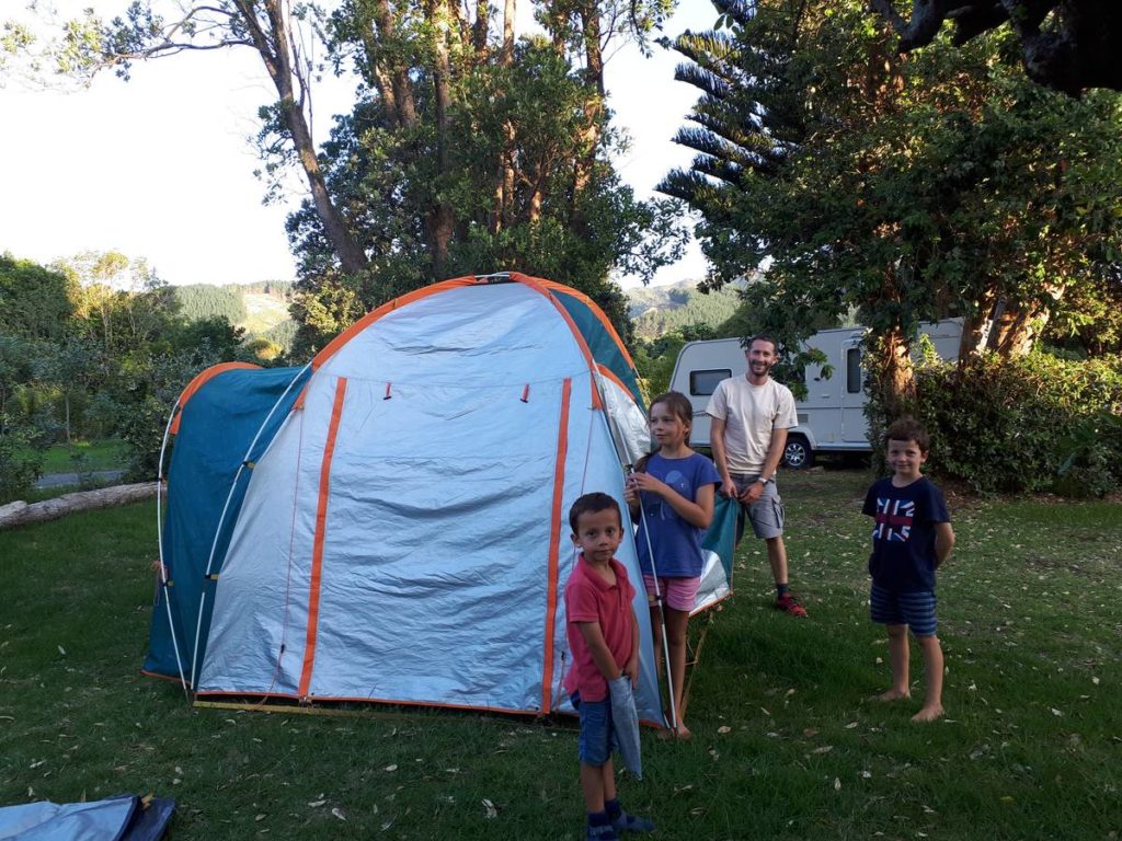 Nous avons tous les cinq largement fait progresser nos talents de campeurs! Nous avons planté et déplanté la tente onze fois durant ces trois semaines et toute la famille a participé. Autant être efficace, cela laissait plus de temps pour jouer et découvrir le pays! Le temps de montage et démontage a dû être divisé par deux entre les premiers jours dans l’île du Sud et ce séjour! Idem pour le remplissage du coffre, où à la fin le moindre objet avait sa place attitrée!