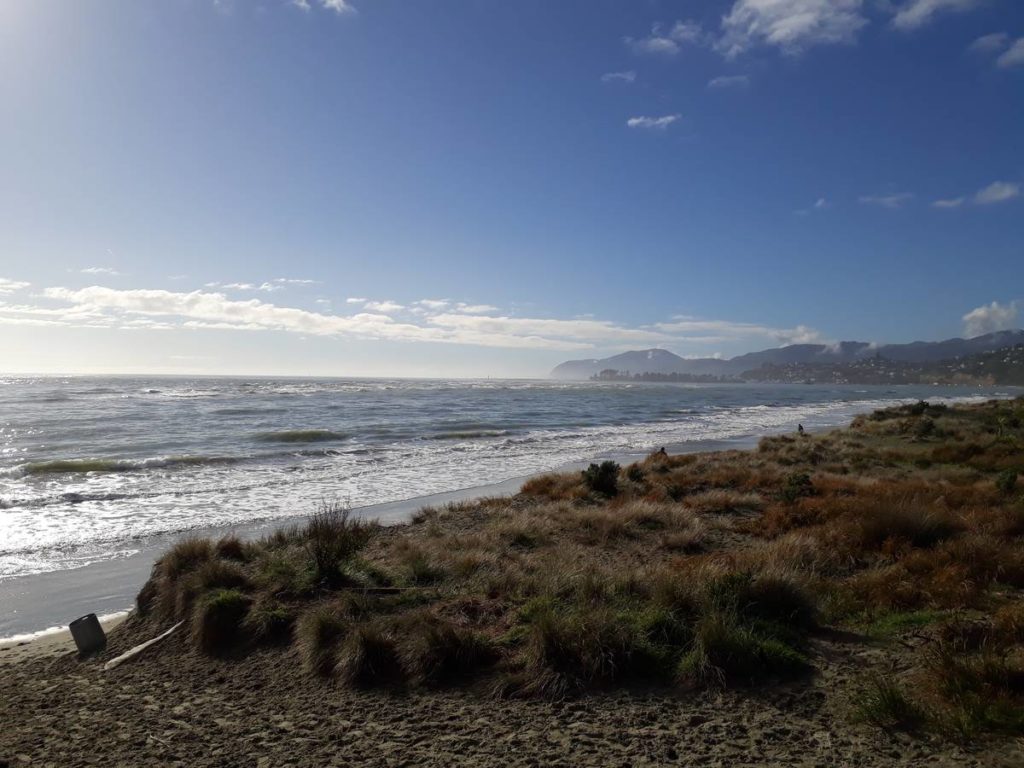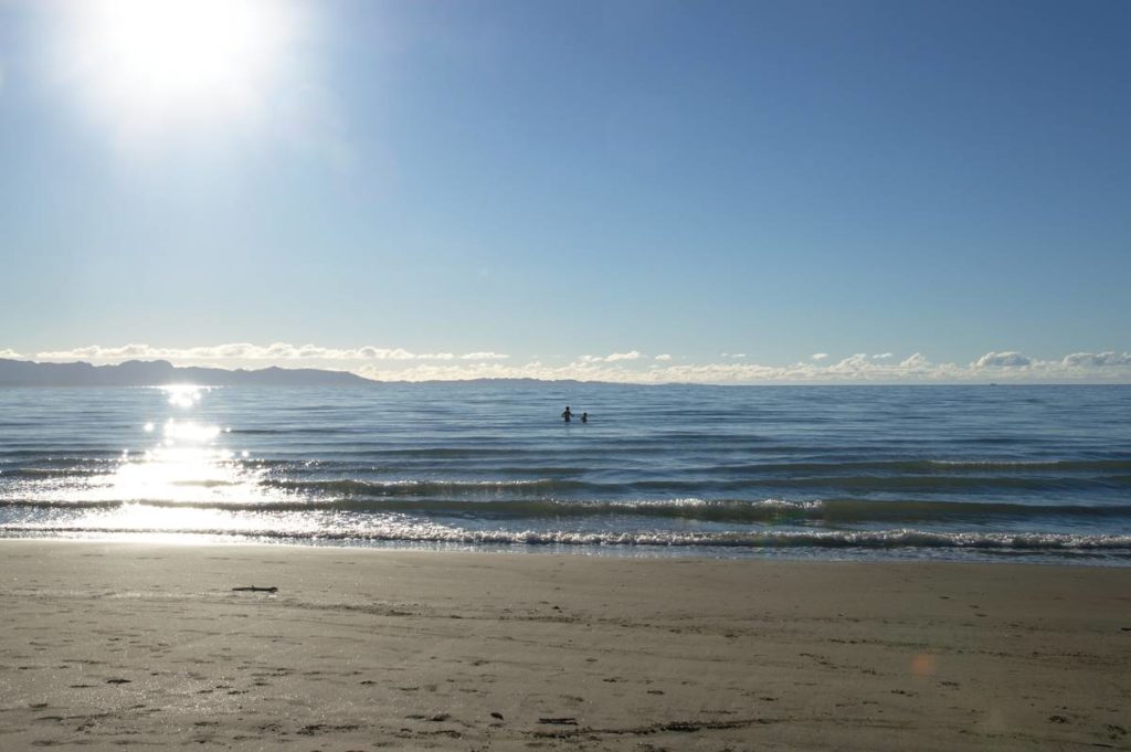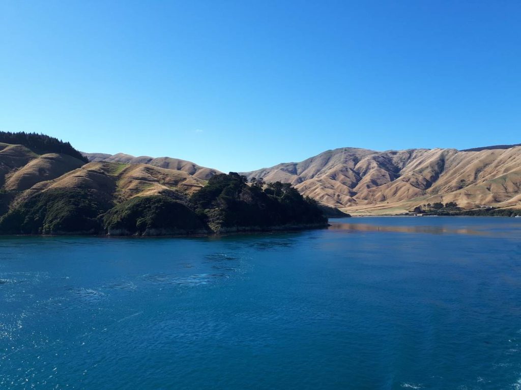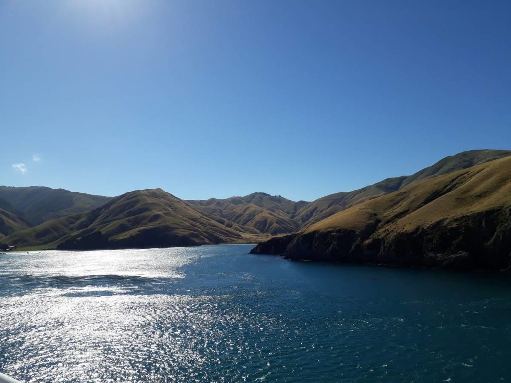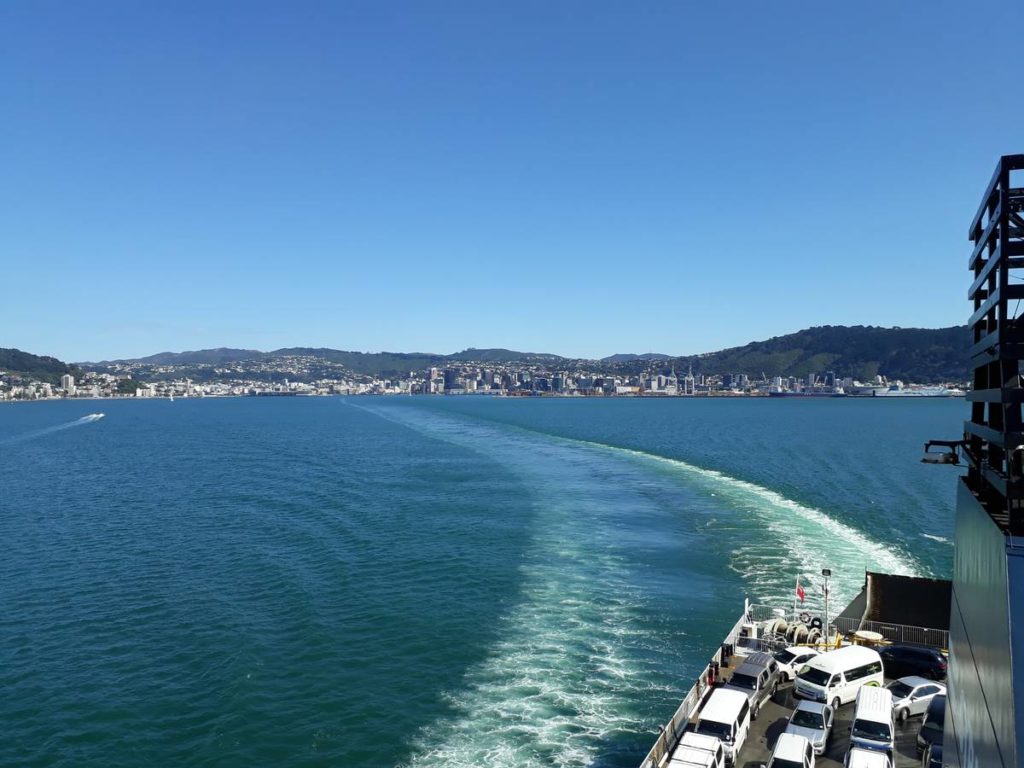 Après le parc Tongariro, nous avons roulé sur une belle route dans les terres, sans village à traverser, ce qui a été plutôt rare de puis le début de notre périple dans l’île du Nord. Nous avons rejoint la périphérie de Palmerston North puis la côte ouest jusqu’à Paekakariki, village situé à une quarantaine de minutes au nord de Wellington. Nous y avons passé la soirée, la nuit et une partie de la matinée du lendemain. La plage était très agréable, nous avons pu y observer de nombreux pêcheurs équipés d’une longue ligne (palangre) à laquelle sont accrochés une bonne vingtaine d’hameçons. La tête de ligne est entraînée vers le large au moyen d’un flotteur motorisé en forme de requin! La ligne est ramenée au bout d’une heure ou une heure trente. Nous n’avions jamais vu un tel système. Les poissons pêchés étaient beaux et de grande taille! Nous avons aussi profité de cette mer si calme pour nous baigner. C’était notre dernière baignade sur l’île du Nord! En face de cette plage se trouve une île nommée Kapiti island. Ensuite nous avons rejoint en voiture Wellington pour prendre le ferry et rejoindre Picton. La traversée a été fort agréable. Nous avons profité du beau temps et sommes restés à l’extérieur tout le long du trajet en admirant Wellington sous un beau soleil puis les Malborough Sounds sur l’île du Sud. Nous avons également sympathisé avec deux couples français en vacances en Nouvelle Zélande.