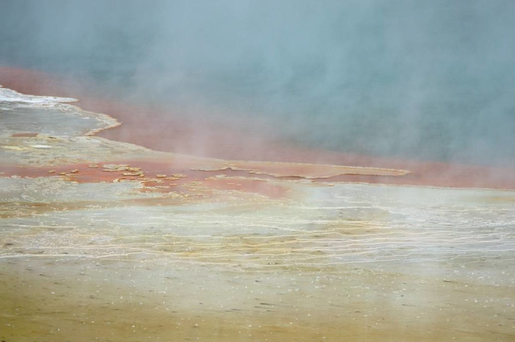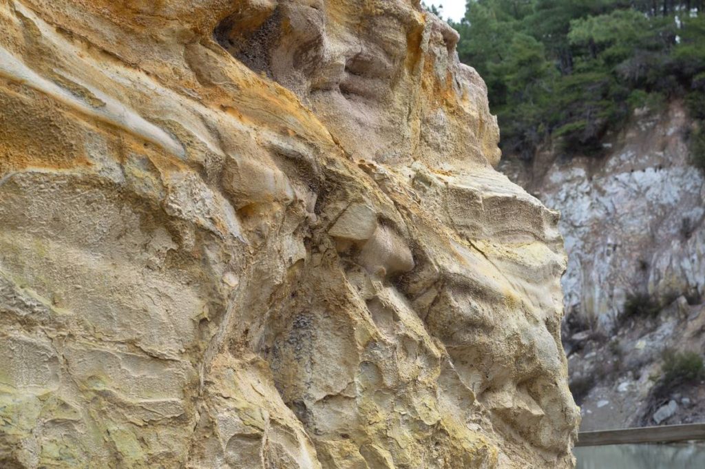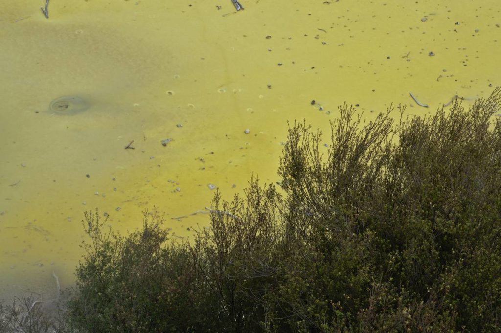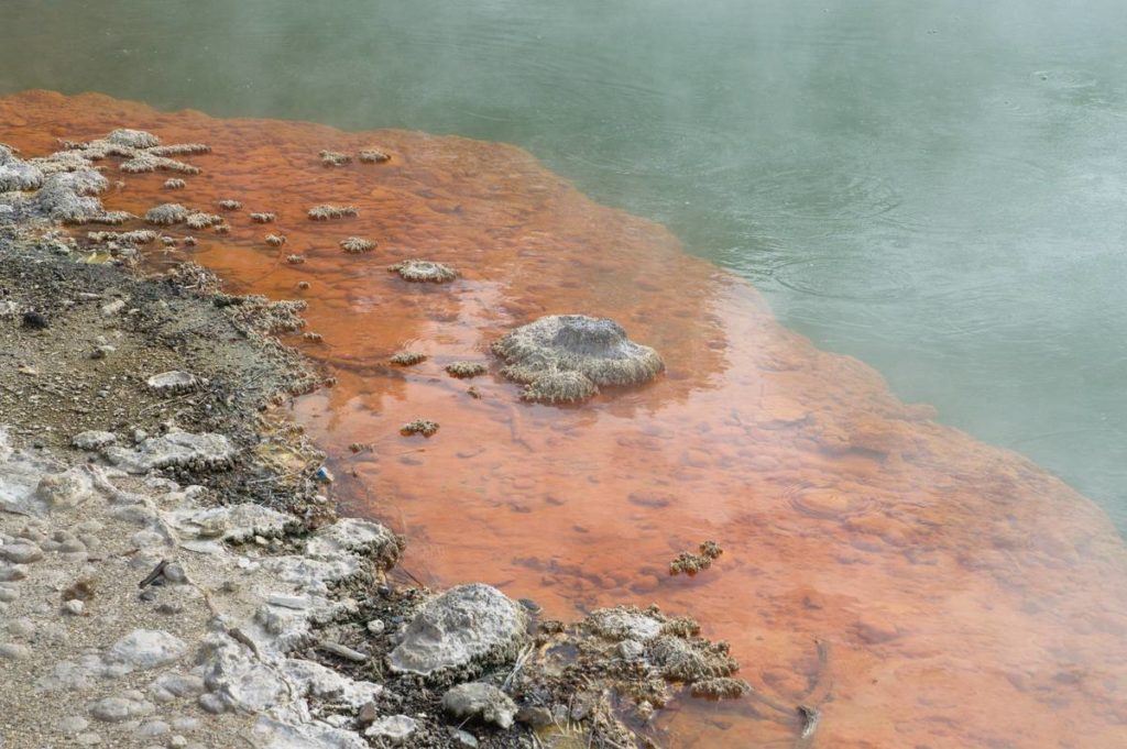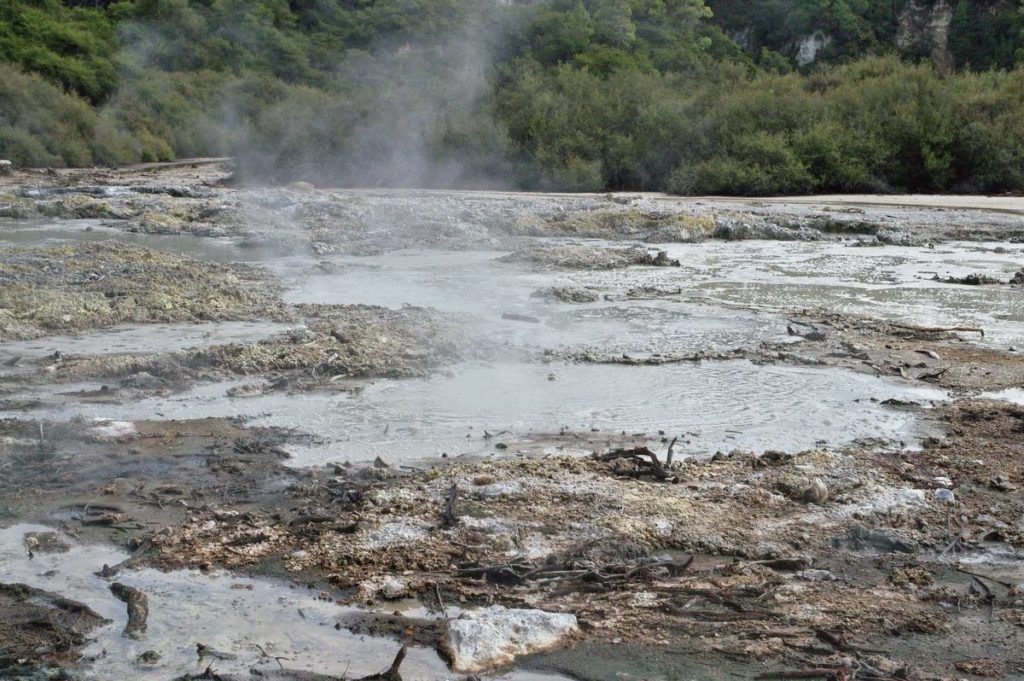 Un peu plus loin nous avons visité Wai-O-Tapu, un parc exceptionnel pour ses phénomènes géothermiques: concrétions de soufre, cratères fumants et rugissants, bassins effervescents, concrétions rouges, bassins de boue bouillonnante, lac vert fluorescent. De quoi tenir les sens en éveil. Les différentes couleurs sont dues aux ions métalliques qui précipitent au contact du dioxide de carbone, fer, argent, or, antimoine, mercure etc.