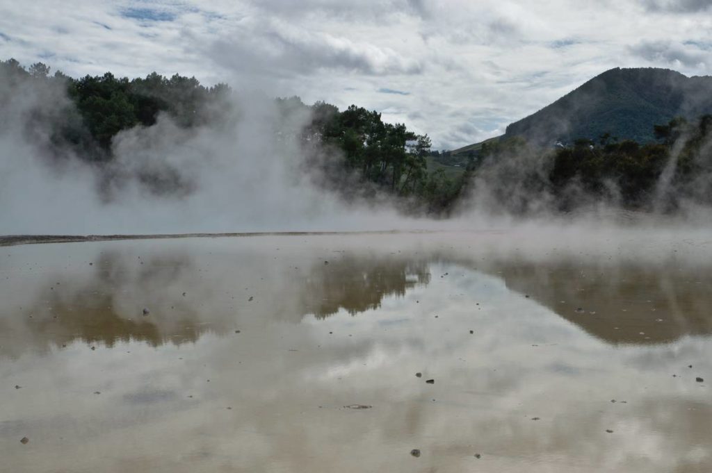 Le lendemain nous avons eu droit à la pluie toute la journée ; il faut bien que ça arrive de temps en temps . L’après midi nous sommes allés dans un établissement de bains avec différentes piscines entre 33 et 40°C dont certaines avec de l’eau soufrée des sources. D’ailleurs une forte odeur d’œuf pourri plane sur la ville. Toute la famille s’est laissée ramollir pendant deux heures… Nous sommes allés ensuite voir les abords du lac où se situaient les premières sources chaudes exploitées au 19ème siècle.