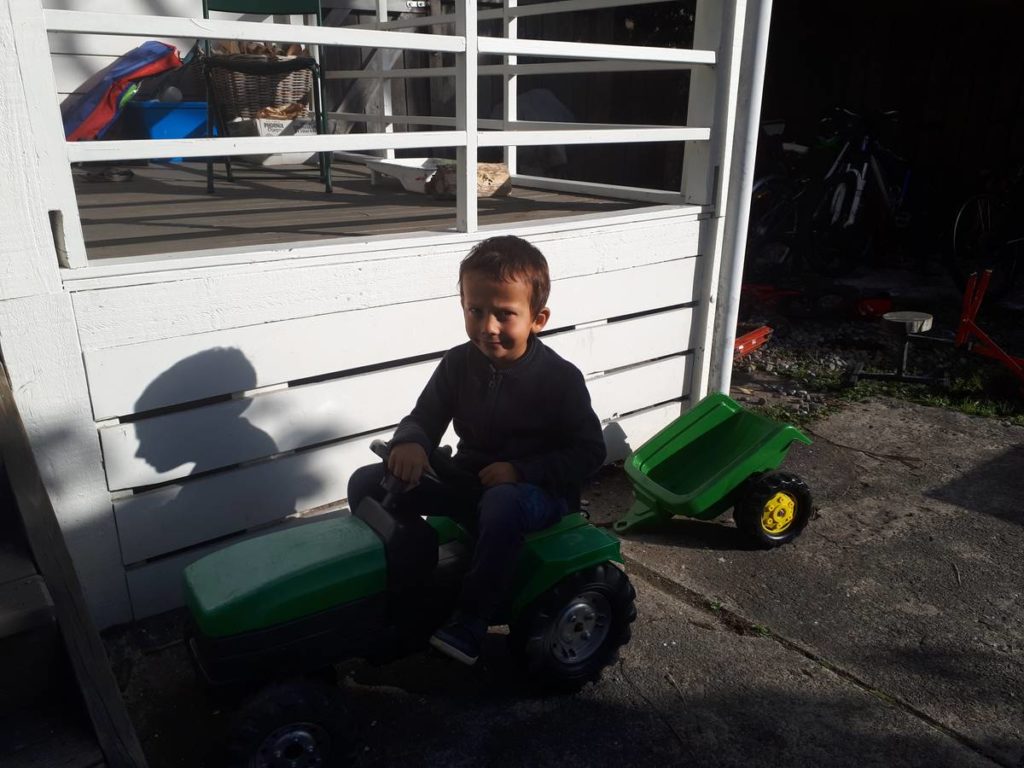 L’après-midi, l’école à la maison se terminant au plus tard à quinze heures, Clarence et Léon en profitent souvent pour aller jouer avec leurs copains et copines des alentours ou vont à leur cours d’anglais ou à leur activité sportive. Brieuc attend chaque semaine avec impatience le jour de la toy library, jour où il va pouvoir emprunter de nouveaux jeux! Il emprunte le plus souvent de gros engins tels que tractopelle, camion benne, camion poubelle.