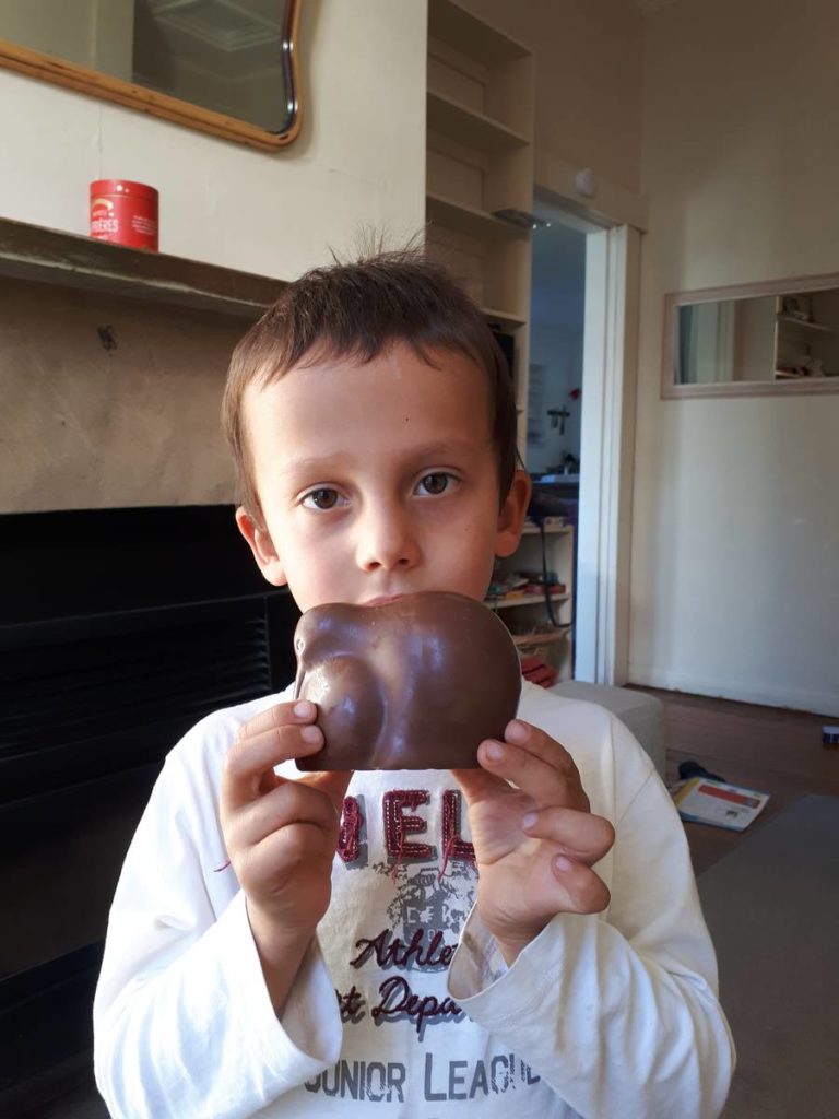 Nous avons passé la semaine sainte et la fête de Pâques à Nelson chez nous. Les cloches sont passées et ont déposé de nombreux chocolats dans le jardin. Il y avait même des kiwis au chocolat! Le plus gourmand de tous a été le plus petit, Brieuc! En moins d’une semaine tous ses chocolats étaient mangés. Il a été suivi de près par François-Yves, plus rapide qu’Aurélie, c’est rare!