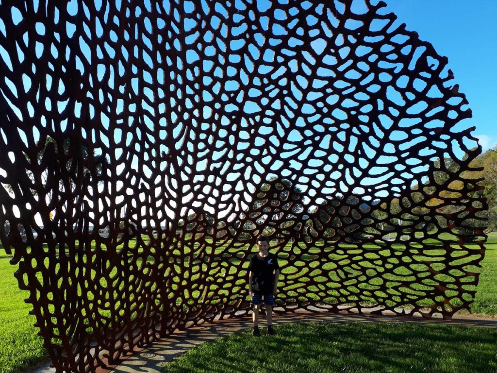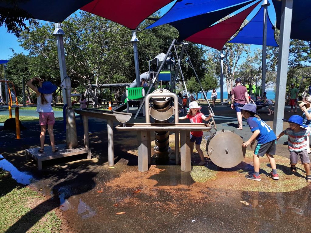 Pique-nique sur l’esplanade du parc du bicentenaire et nombreux jeux pour les enfants avec eau, sable, immense toile d’araignée.