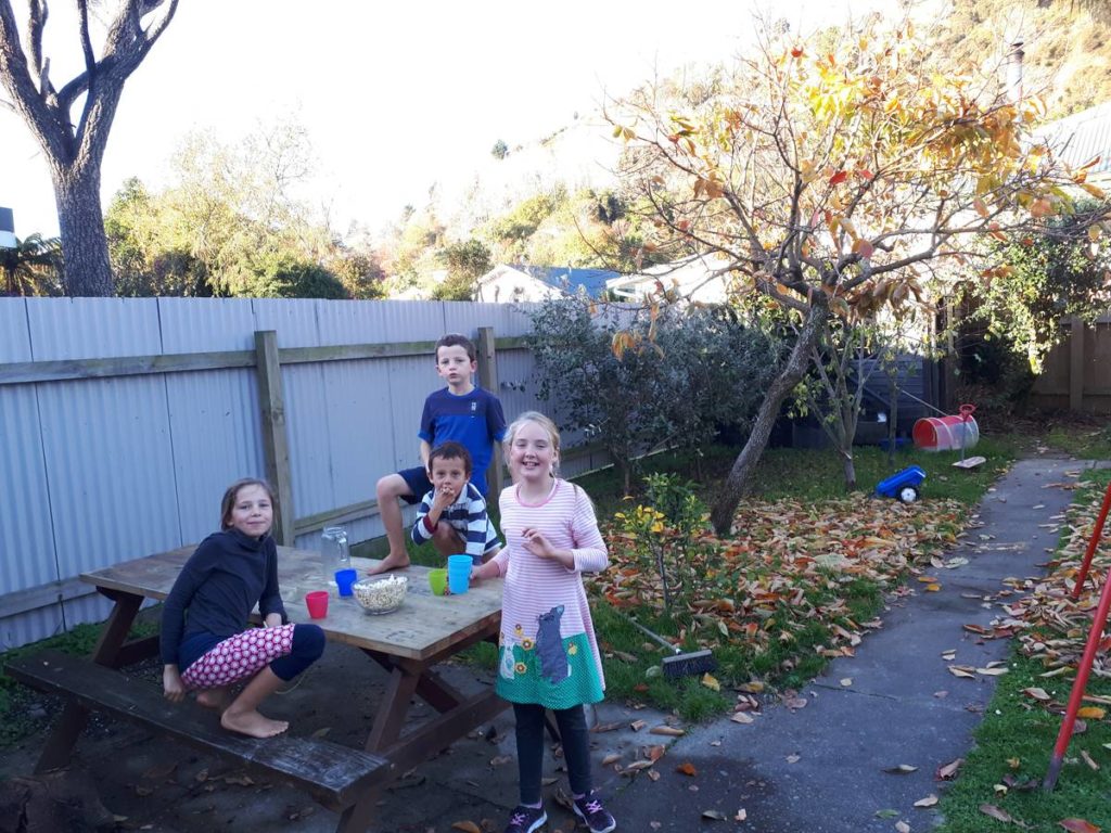 Début avril, nous avons tous repris le rythme quotidien: l’école à la maison pour Clarence et Léon avec Francois-Yves, le Kindergarten pour Brieuc. Et Aurélie de son côté a consacré du temps pour aller observer des classes primaires à l’école Central School ou à l’école Saint-Joseph à Nelson.
