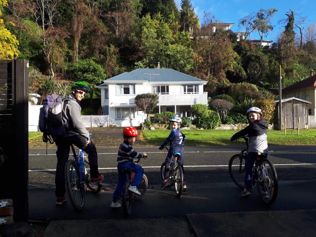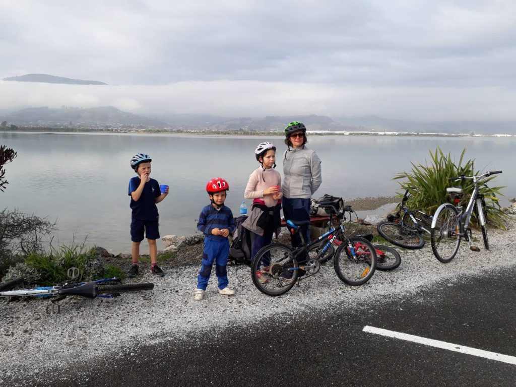 Quelques jours avant notre départ nous avons fait une dernière sortie en famille autour de Nelson. Nous avons roulé pendant 25 km et personne n’a faibli!