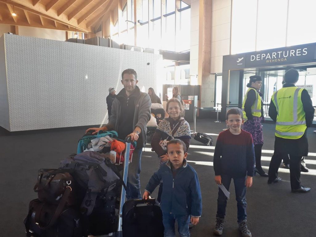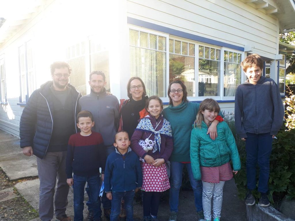 Avec Rebecca, Alain, Jule et Emi devant la maison de NelsonAéroport de Nelson