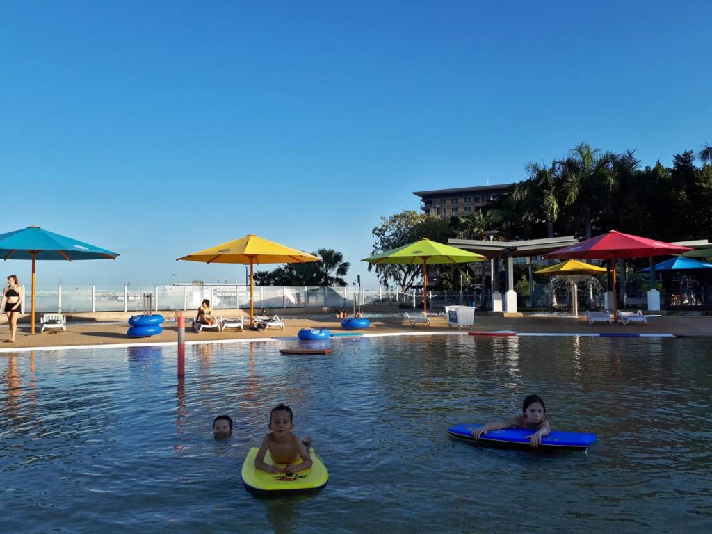 La baignade dans la grande piscine du front de mer suivie d’un feu d’artifice pour la fête locale à l’occasion de l’anniversaire de la création de la région des Territoires du Nord. Les feux d’artifice « spontanés » des australiens se sont prolongés tard dans la nuit.