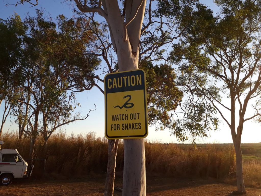 Nous sommes restés deux jours à Darwin pour visiter, prendre en main l’engin et faire les courses avant de partir pour l’immensité australienne. Darwin se situe sur la côte au Nord de l’Australie. C’est la capitale des Territoires du Nord (Northern Territories). Le climat y est tropical avec une saison sèche en hiver et une saison humide en été. En ce moment c’est la saison sèche car nous sommes en hiver. C’est simple: il fait 30 à 32°C tous les jours avec un grand ciel bleu. C’est idyllique! En bord de mer en plus. Sauf que… il est déconseillé de se baigner à cause des crocodiles et des méduses qui peuvent provoquer la mort par arrêt cardiaque en deux minutes. De quoi refroidir les ardeurs des plus motivés.