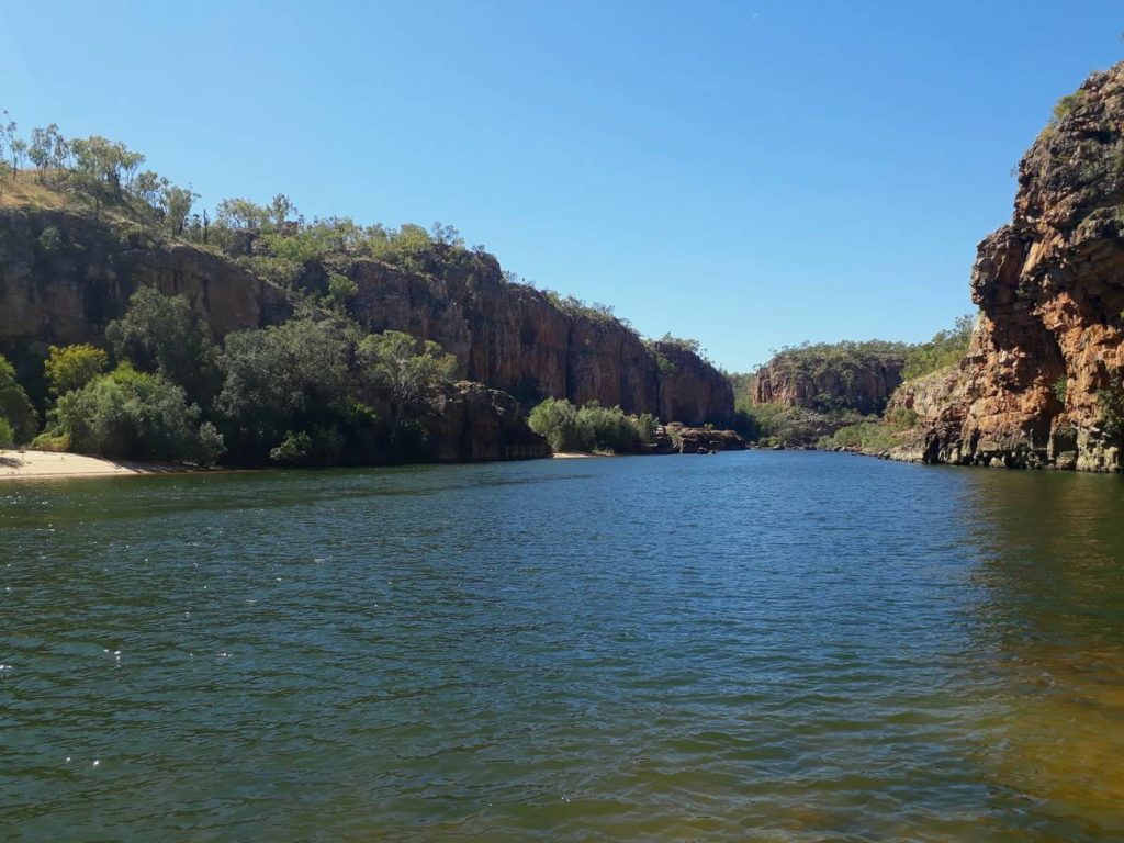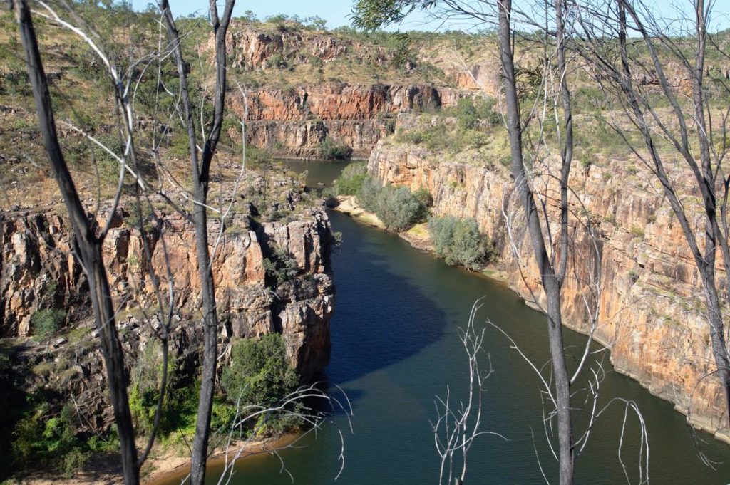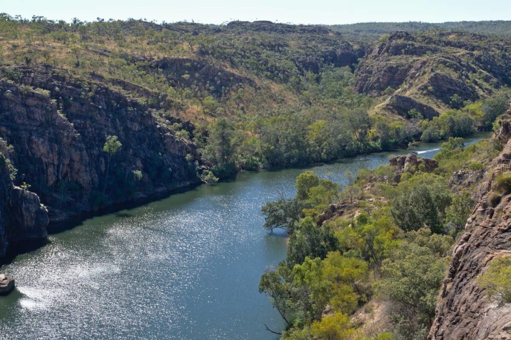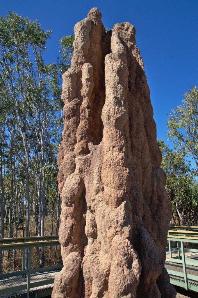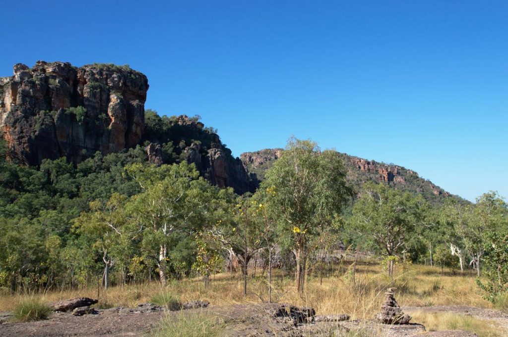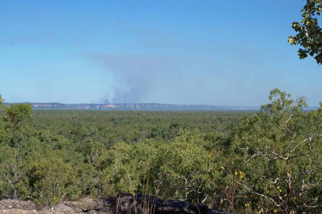 Les Territoires du Nord sont généralement plats avec parfois des escarpements abrupts menant à des plateaux, eux même creusés par des rivières formant des cascades ou des gorges comme à Katherine. Nous avons eu l’occasion de faire plusieurs marches sur ces escarpements. Autre marqueur des paysages australiens: les termitières, qui atteignent parfois plusieurs mètres de haut. Enfin, on a rapidement remarqué qu’il y avait des feux un peu partout dans la brousse (bush). Il s’agit d’une pratique ancestrale des indigènes: ils mettent le feu au début de la saison sèche, afin de nettoyer le terrain pour ensuite faciliter la chasse et soit-disant prévenir de feux plus dévastateurs plus tard dans la saison sèche. Il semble que l’écosystème se soit adapté à cette pratique millénaire. Le paysage est marqué par ces feux.