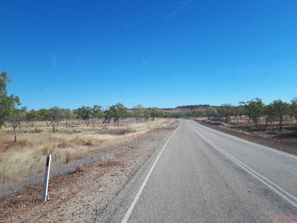 Les routes en Australie sont larges car adaptées au passage des trains routiers (road train) qui sont des camions qui tirent jusqu’à quatre remorques. On y croise aussi de nombreux 4X4, parfois tirant des caravanes tout terrain. Il n’est pas rare que les Australiens prennent un ou deux ans de congés pour visiter leur propre pays. Ils s’arrêtent parfois quelques semaines pour faire des petits boulots puis repartent. Ils campent dans leur caravane, soit dans des campings, soit sur des aires gratuites en bord de route. De nombreux retraités voyagent aussi et quittent les villes du Sud pendant les mois d’hiver. C’est un véritable phénomène de société: on les appelle les « grey nomads ». Dans les zones reculées, il n’est pas rare de faire des centaines de kilomètres sans voir de station essence, ni de magasin. On ne croise pas non plus grand monde sur la route.