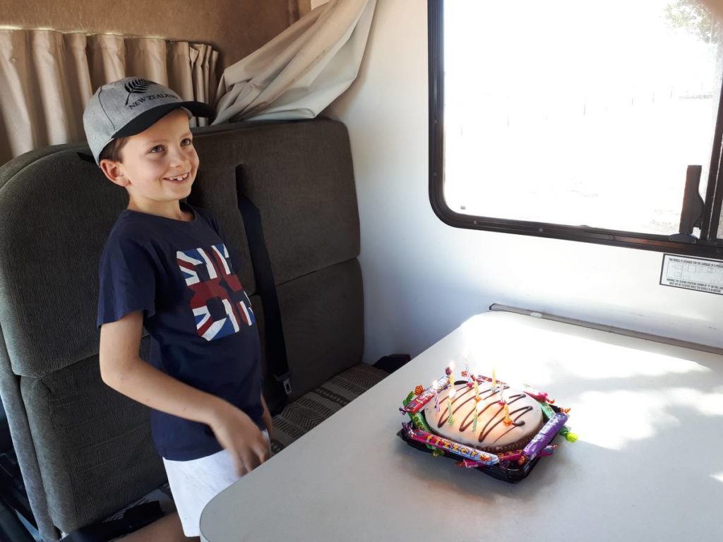 Alors qu’Aurélie a soufflé ses bougies autour du feu de camp, Léon a soufflé ses 9 bougies dans le camping car, à Darwin, la veille de notre départ pour Singapour.