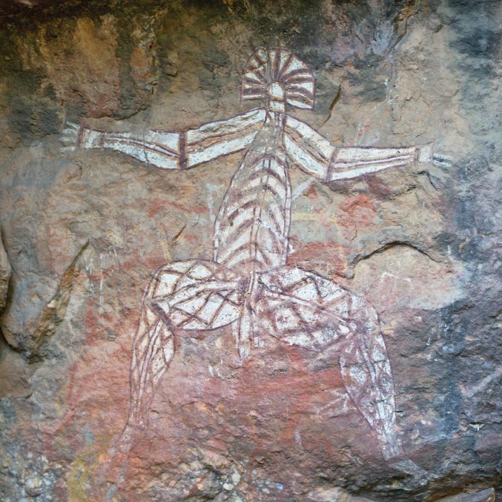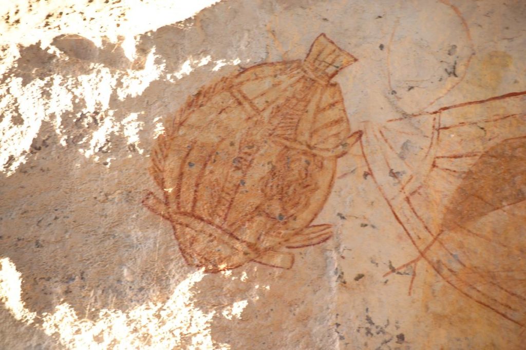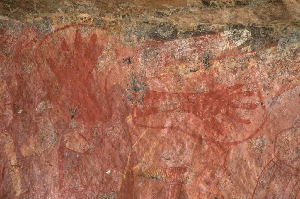 En de nombreux endroits nous avons pu observer des peintures aborigènes anciennes, relatant leur vision du monde. Les dessins font la part belle à l’ocre, au rouge, au blanc et au noir. Le trait est fin.