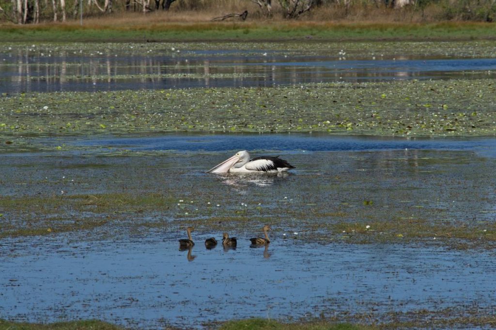 Le danger est partoutUn wallabyLézard à langue bleueLe fameux crocodile marinUn aigleDans le billabong de BurrungkuyPellicanVeuve noire à dos rouge (mortelle)