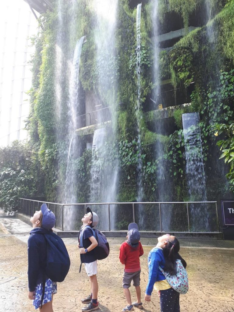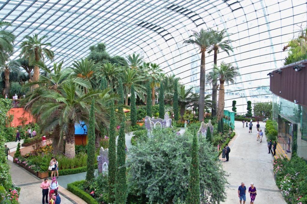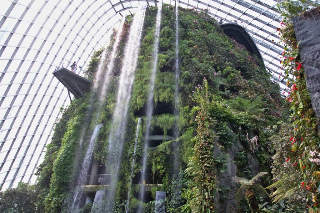 Les deux dômes: Cloud forest et Flower dome. Ce sont d’immenses serres vitrées à plusieurs étages. Cloud forest avec sa grande chute d’eau, ses arbres et ses fleurs tropicaux. Flower dome avec ses fleurs, arbustes, cactus…