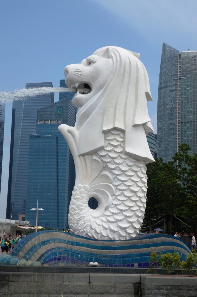 Le célèbre Merlion: emblème de la ville de Singapour, c’est une grande statue à tête de lion et corps de sirène crachant de l’eau dans la baie. Cet animal étrange aurait été aperçu par les premiers arrivants.