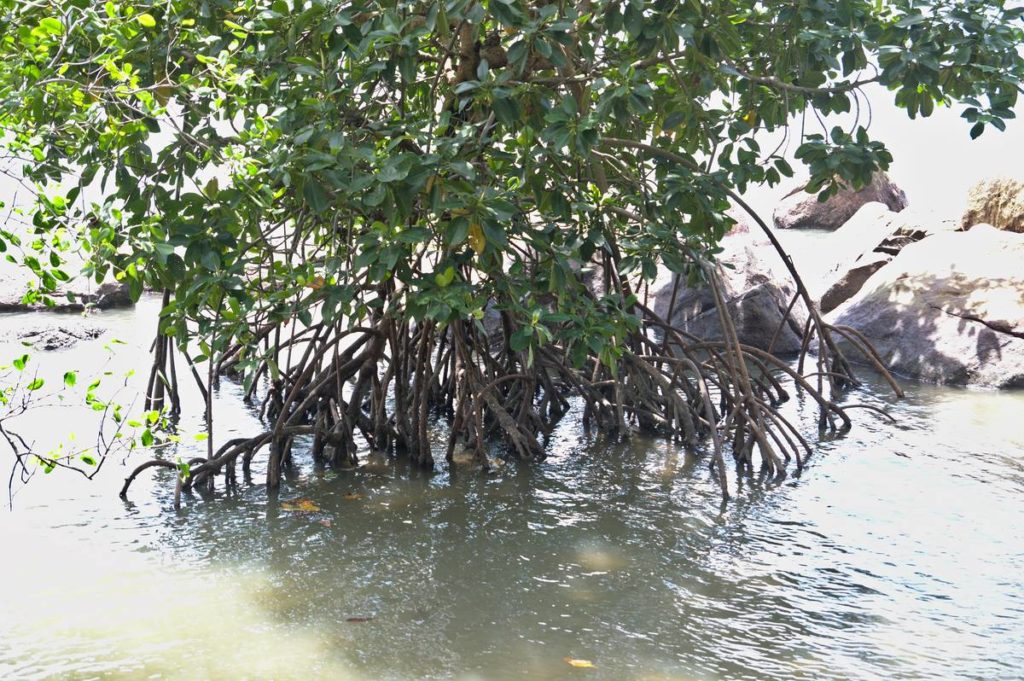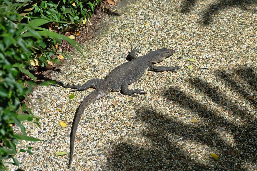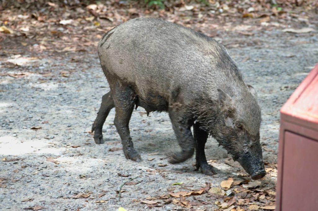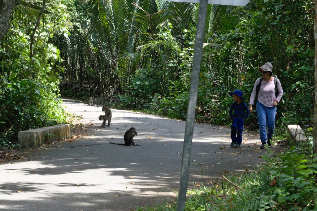 Cette île est très agréable à parcourir à pied ou en vélo. A certains endroits, la jungle est dense. Si les tigres ont disparu du lieu depuis longtemps, les singes (macaques à longue queue) sont maîtres du territoire et sont nombreux. Au point qu’il faut parfois se frayer un chemin pour passer. Il faut éviter de les regarder dans les yeux car ils peuvent devenir agressifs et mordre. Mieux vaut aussi garder sa nourriture bien cachée! De nombreux sangliers et également de gros lézards (cloud monitor) sont présents. Nous nous rendons vers une pointe sur la côte et nous baladons sur une passerelle longeant la côte. Nous apprécions cette journée en dehors de la grande ville.