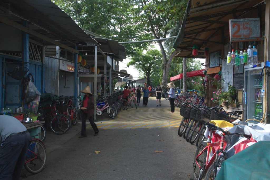 L’île de Ubin Nous avons décidé de passer une journée à l’extérieur de la ville de Singapour sur l’île d’Ubin à cinq kilomètres de Singapour depuis Changi, ancien village de pêcheurs qui jouxte l’aéroport, avec Annie, Gary et Hannah. Pulau Ubin était un des derniers villages traditionnels avant que l’urbanisation et le tourisme fassent leur œuvre. Il était dynamique et plus peuplée une cinquantaine d’années auparavant. Aujourd’hui, il ne reste plus beaucoup d’habitants, ces derniers ayant décidé de se rapprocher de la grande ville de Singapour. Il n’y a plus d’agriculture: les derniers habitants sont soit pêcheurs, soit loueurs de vélo.