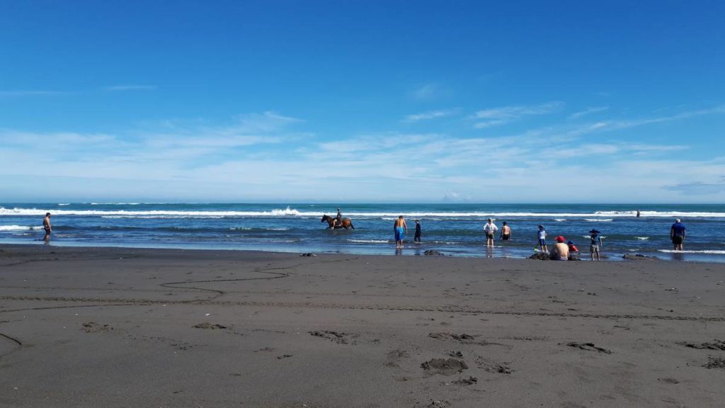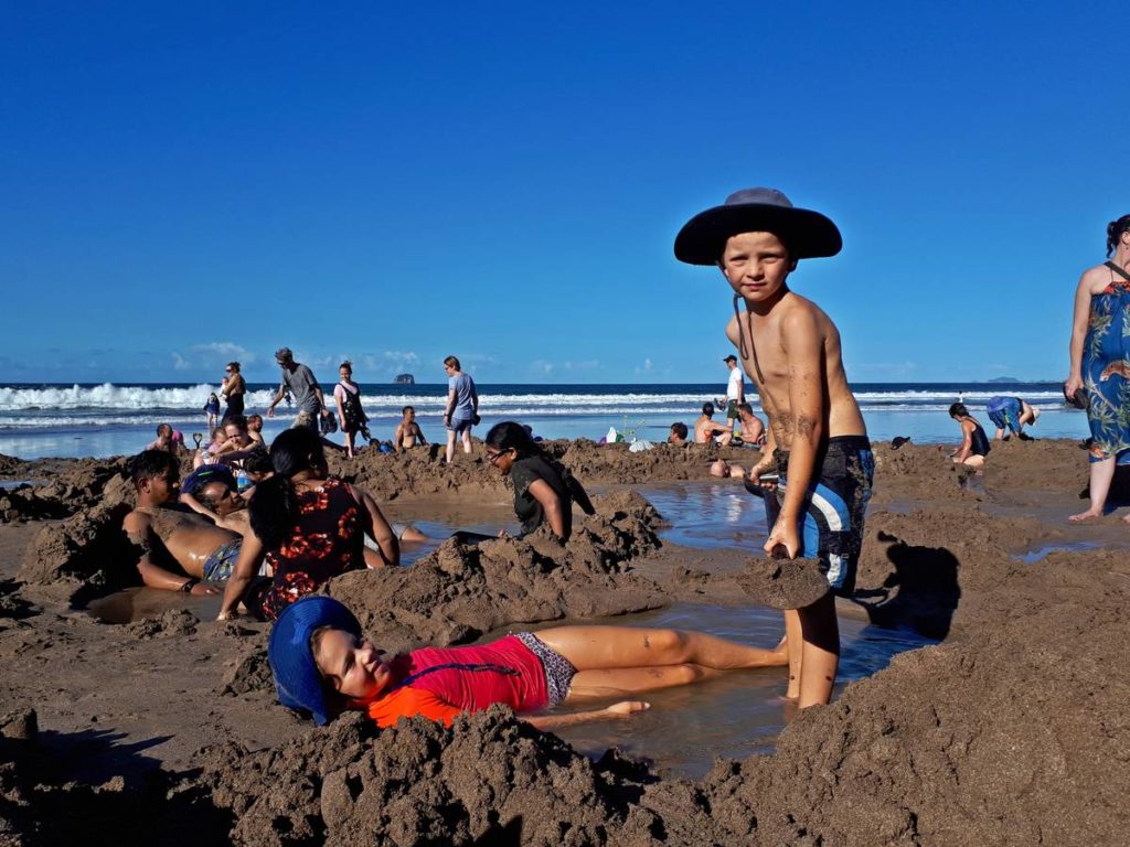Le samedi matin, le 16 mars, nous nous sommes rendus sur une plage située sur la côte ouest de l’océan, au niveau de Kawhia, sur laquelle des sources d’eau chaude sont ressenties à marée basse. Armés de nos pelles, prêtées par le camping, nous avons creusé et avons découvert ces sources chaudes. Nous avons pu sentir, surtout par les pieds immergés dans le sable, ces sources de chaleur assez surprenantes. Nous avons passé un bon moment! Ce lieu n’est pas très connu des touristes. Il appartient à des Maoris et ces derniers ne cherchent pas à ce que cette plage devienne un lieu touristique.