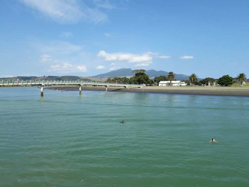 nous baigner dans la baie dans le centre de Kawhia. Le sable de la