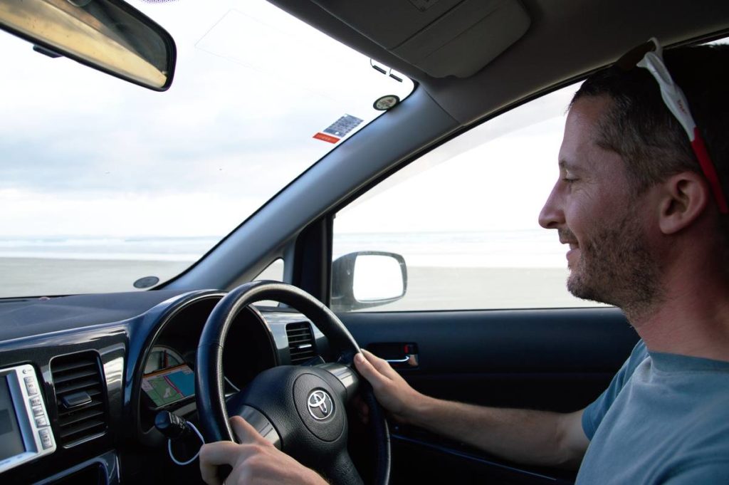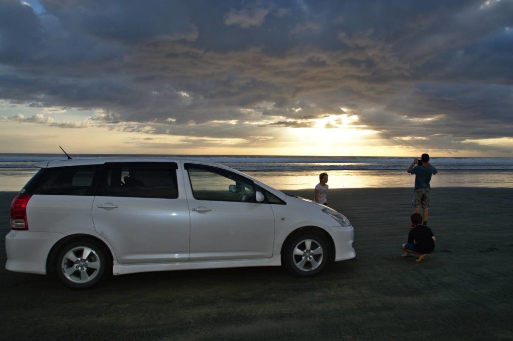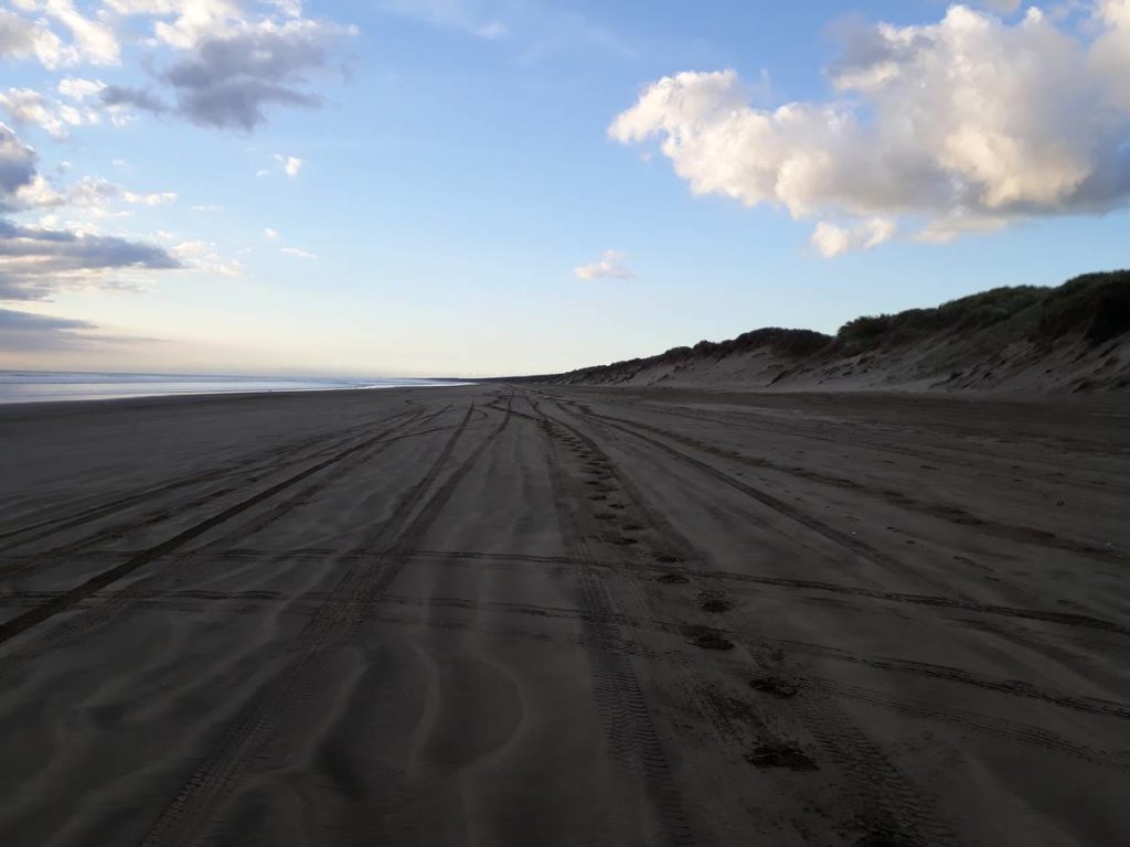 Après nous avons rejoint le parking du Cape Reinga en voiture et avons marché jusqu’à l’extrémité nord de l’île où se trouve un joli phare. La vue était superbe, la mer très calme, et le bleu du ciel rendait le lieu magique. Il a fallu beaucoup rouler pour nous rendre jusqu’au bout du bout de la NZ mais nous ne sommes pas déçus du voyage ! Au retour nous voulions prendre la grande plage en voiture depuis les grandes dunes jusqu’au camping mais faute de 4X4 nous avons renoncé suite aux conseils de certains. En effet à marée basse la ninety miles beach devient une route nationale officielle. Nous sommes rentrés en voiture à Hukatere près de notre camping et avons emprunté la plage à ce niveau là en direction du Sud. Nous avons roulé à 110 kilomètres heure sur la plage ! Mémorable! Le conducteur s’est bien amusé!
