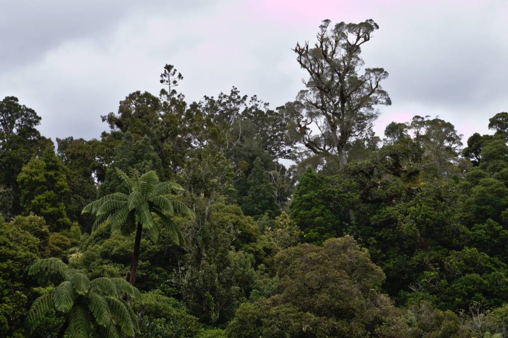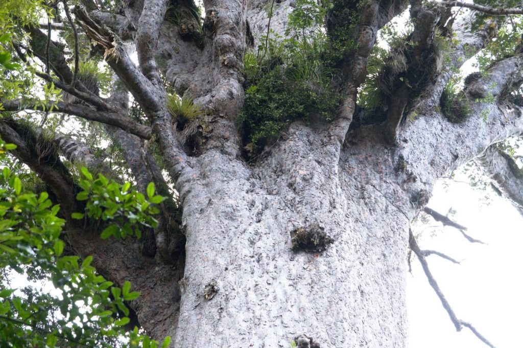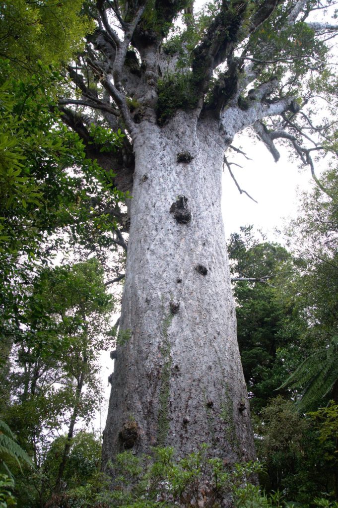 Le lendemain matin nous nous sommes baignés dans la rivière Waipoua, considérée comme sacrée par les Maoris, puis nous avons traversé la forêt du même nom en voiture puis à pied. Nous avons dû là aussi nous laver les chaussures avant d’emprunter les sentiers de la forêt pour éviter de contaminer les kauris et essayer de préserver le plus longtemps possible ces arbres millénaires ! Nous n’avons pas le droit de nous en approcher de trop près. Nous avons notamment admiré le plus haut kauri de la Nouvelle Zélande, le Tane Mahuta d’une hauteur de 51 mètres et d’une circonférence de 14 mètres. Les experts du conservatoire du territoire estiment son âge à environ 2000 ans. Impressionnant! Nous avons également admiré d’autres kauris, les « four sisters », quatre kauris poussant côte à côte, quelques autres kauris dont leur âge dépasse le millénaire, ainsi que de grandes fougères et des palmiers.