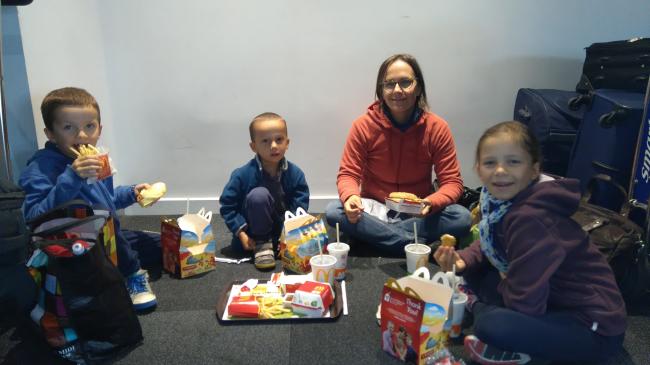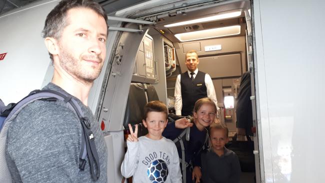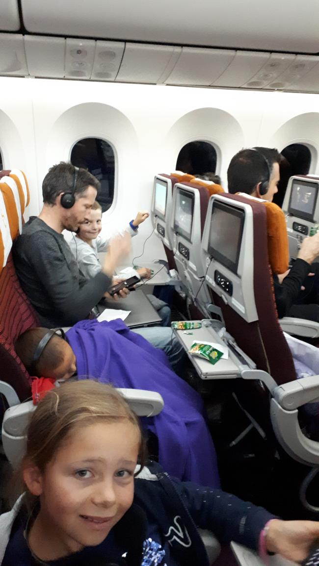 Nous passons tous une bonne nuit de sommeil malgré le changement d’heure. La fatigue a pris le dessus ! Les enfants font plus que le tour du cadran. François-Yves se lève le premier suivi d’Aurélie, de Clarence et de Léon. Brieuc continue à dormir puis nous le réveillons vers 11h30 du matin après 14h de sommeil pour ne pas qu’il soit trop décalé!