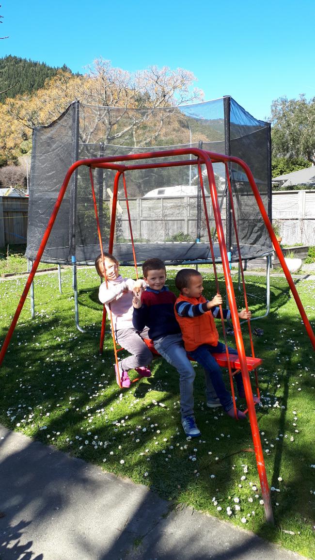 Nous nous réveillons sous un beau ciel bleu et les enfants découvrent davantage la maison et le jardin. Ils s’amusent beaucoup dans le jardin: balançoire, trampoline, vélo, trottinette, petit engin qui ressemble à un mini tractopelle! François-Yves s’occupe des démarches administratives pour ouvrir un compte en banque et assurer la voiture que l’on a rachetée à une famille toulousaine qui a passé l’année précédente à Nelson. C’est grâce à ce couple Toulousain que nous sommes rentrés en contact avec Rebecca et Alain. Nous rejoignons François-Yves dans le centre de Nelson à pied. Clarence est très observatrice sur le trajet et essaie de comprendre ce qui est écrit sur les boîtes aux lettres et dans la rue. Nous passons devant l’école de Jule et Emi, les enfants d’Alain et Rebecca. Nous déjeunons dans un petit restaurant puis nous nous baladons dans Nelson et apercevons la mer. Nous rentrons à la maison bien fatigués. Petite pause à la maison puis nous décidons de prendre la voiture pour faire des courses. Nous montons dans la voiture, prêts à partir, mais là, à notre grande surprise la voiture ne démarre pas! Sûrement un problème de batterie ! Il fait nuit, il est trop tard. Nous décidons de nous occuper de la voiture le lendemain matin. Nous allons acheter quelques petites choses simples dans le petit magasin du coin pour dîner. François-Yves essaie de régler le soir les démarches administratives qui ne se solutionnent pas si facilement …
